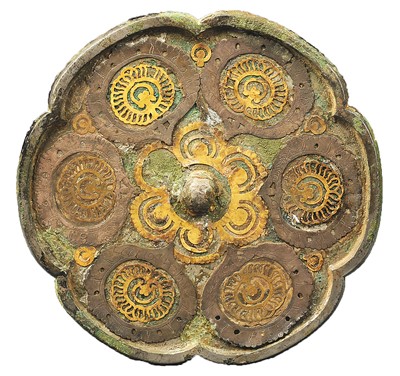 唐代金银平脱宝相纹葵花铜镜。