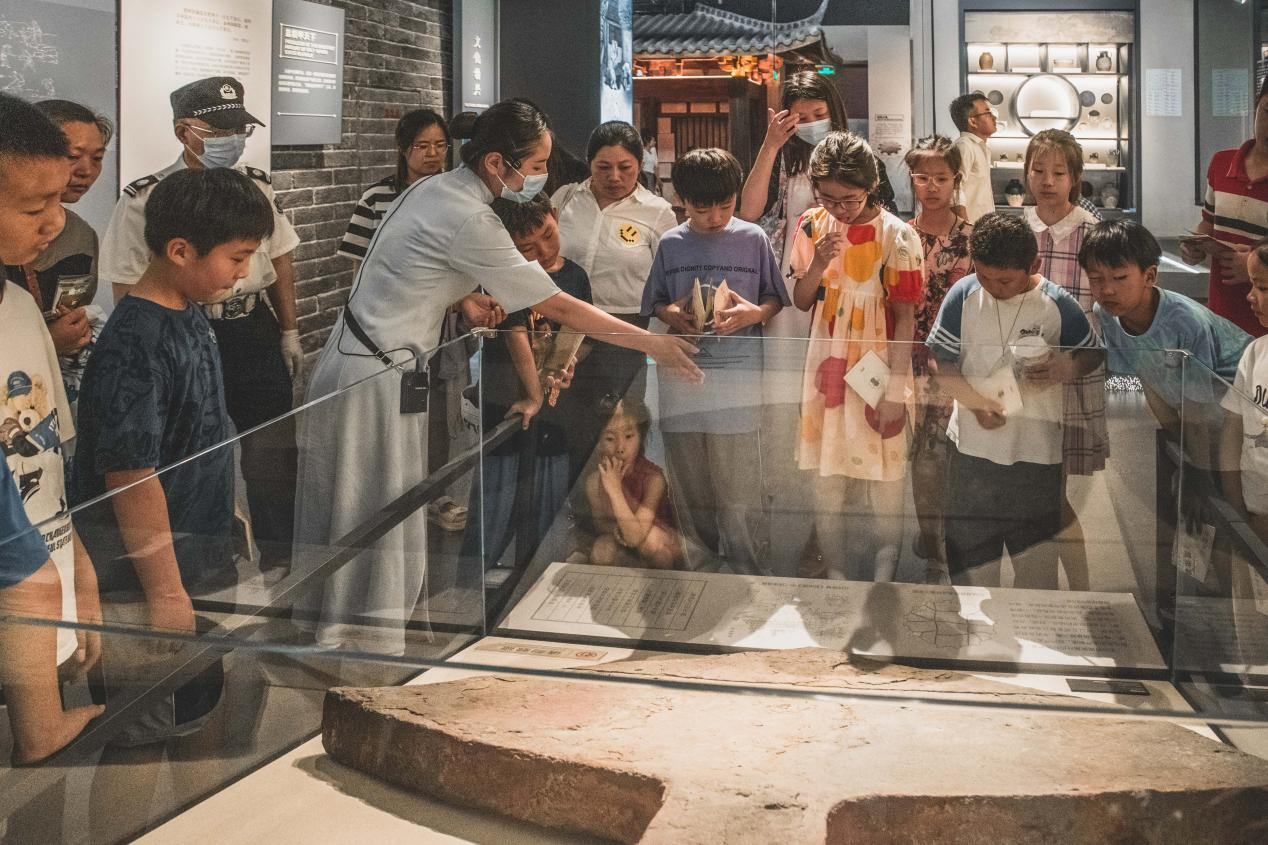 在以“我在盐博修‘文物’”为主题的暑期研学活动现场,小朋友们排着整齐的队伍齐聚盐城市博物馆大厅,讲解员为其分发了“盐博文牒”后便带领孩子们走进展厅,观看实物陈列,畅游文物海洋,领略历史文化的魅力