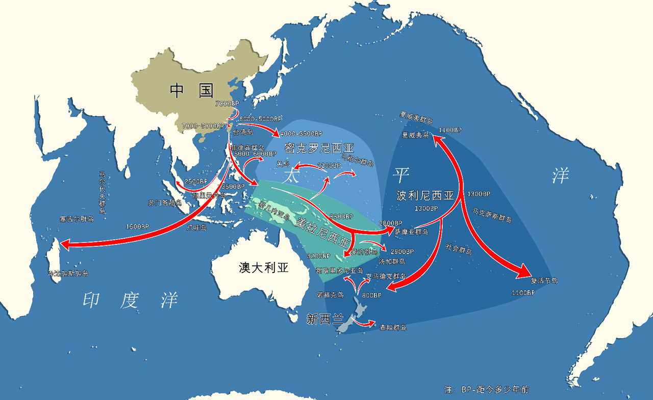 南岛语族起源与扩散示意图