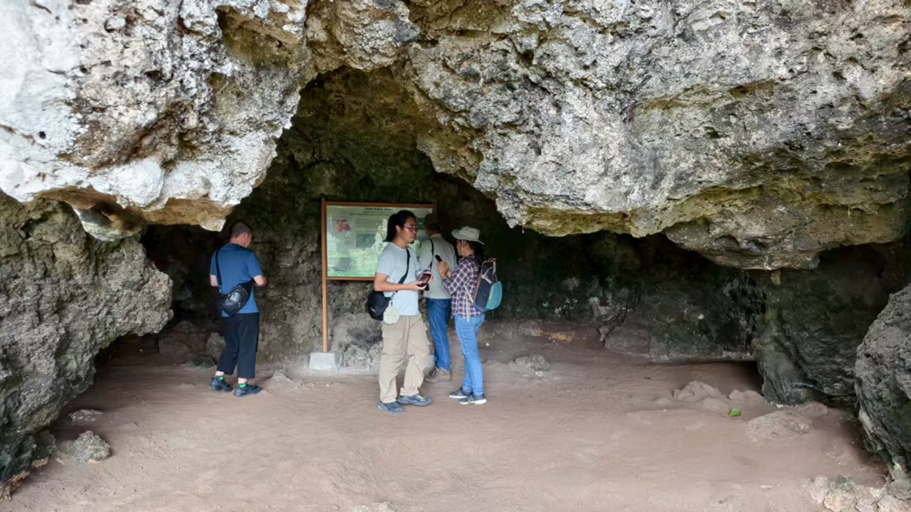 调查期间,考古队员考察了古邦猴洞(Monkey Cave)以及努阿特布考(Nuat Bkau)史前洞穴遗址。猴洞遗址所处山坡由海底火山喷发,再经过亿万年的地质变迁形成。洞穴里可见大量古代海生物的化石遗迹和人类的手掌印痕。