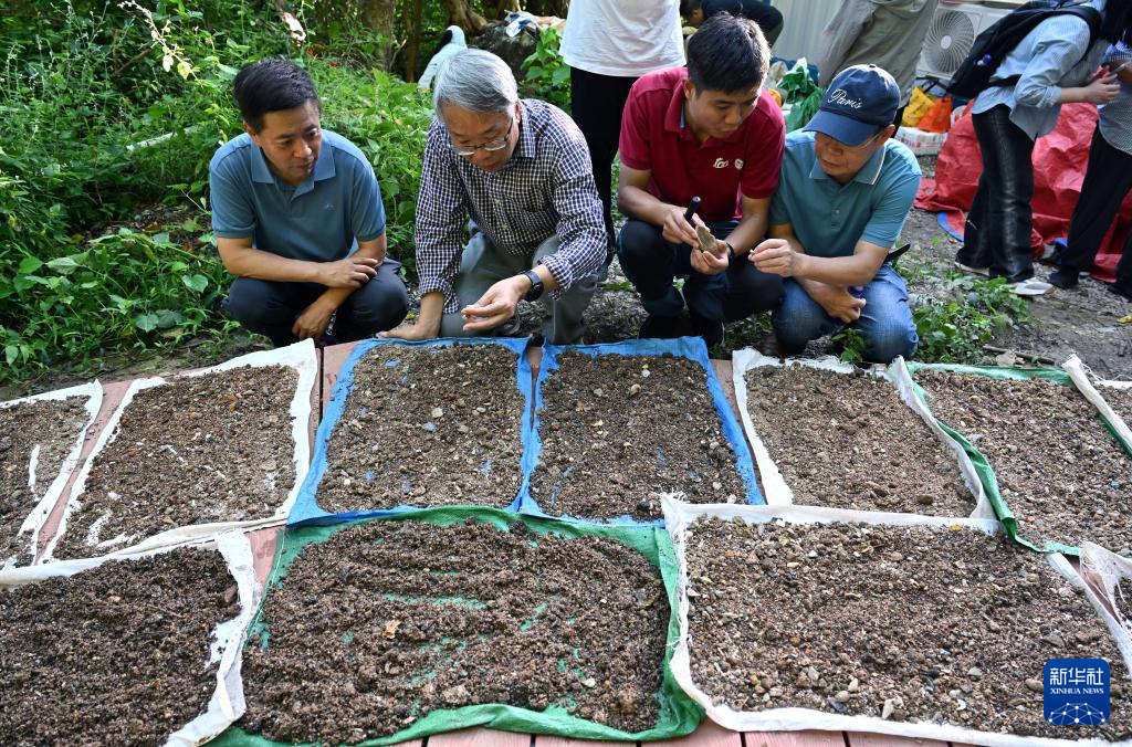 11月8日,考古专家对三亚落笔洞遗址出土土壤进行筛选。新华社记者 郭程 摄