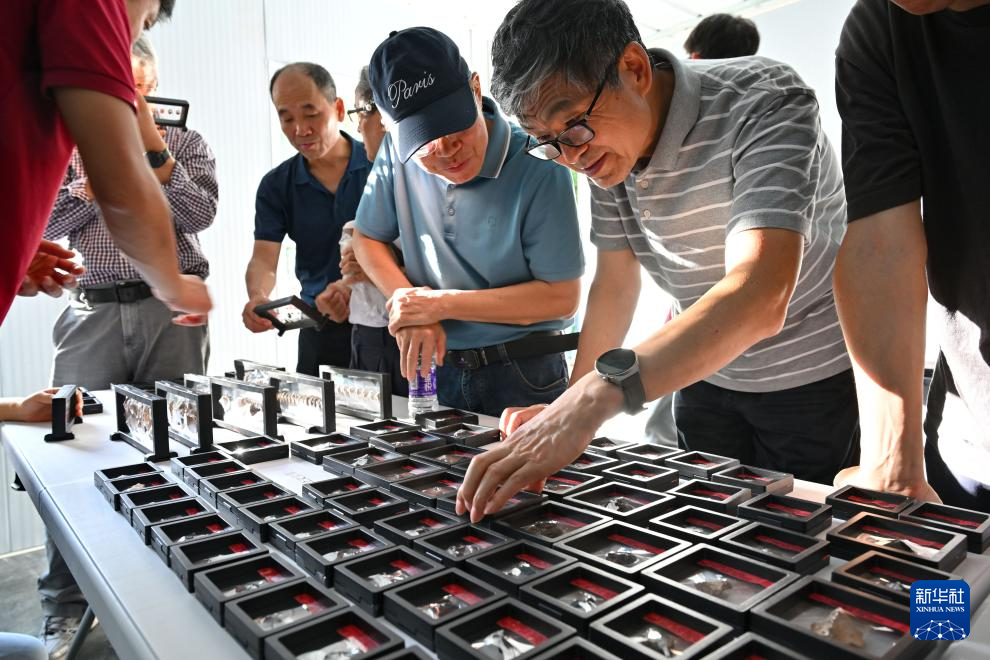11月8日,考古专家在三亚落笔洞遗址观察出土标本。新华社记者 郭程 摄