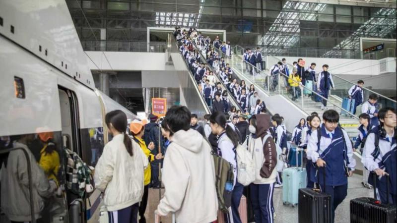 为保障研学团队顺利出行,赣州西站提前掌握研学团返程时间、人数等信息,开设“红色研学专用通道”,安排专人对接旅行社与带队老师,引导师生快速检票、有序进站;同时优化候车区域布局,预留充足候车空间,配备热水、应急药品等便民物资,让师生们在返程前感受到暖心服务。