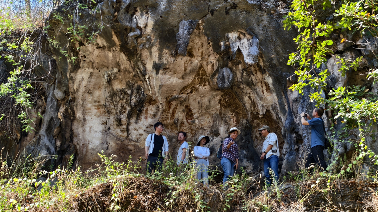 调查期间,考古队员考察了古邦猴洞(Monkey Cave)以及努阿特布考(Nuat Bkau)史前洞穴遗址。猴洞遗址所处山坡由海底火山喷发,再经过亿万年的地质变迁形成。洞穴里可见大量古代海生物的化石遗迹和人类的手掌印痕。