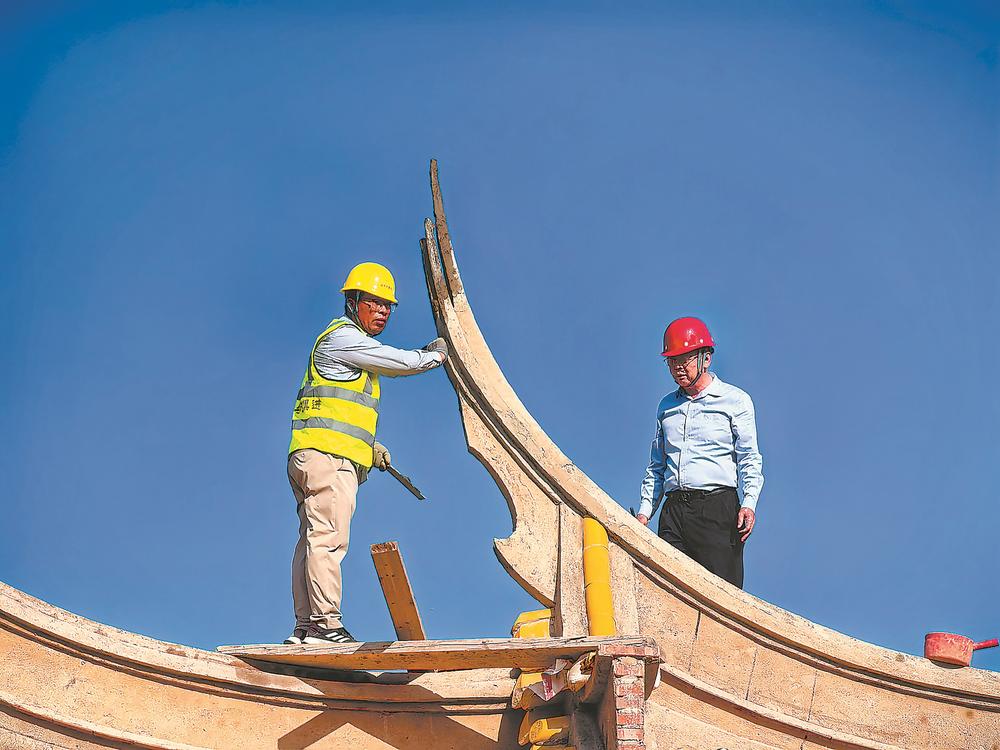 此外,为台商修建闽南红砖墙体的江苏昆山慧聚广场、在澳门修复妈祖文化村、在泉州修复华侨建筑杨阿苗故居……经年累月,许江辉对自己的活计有了更深的感受:“我们一砖一瓦地糊,让海外华侨华人、台湾同胞认祖归宗有了寄托,我感到非常自豪!”